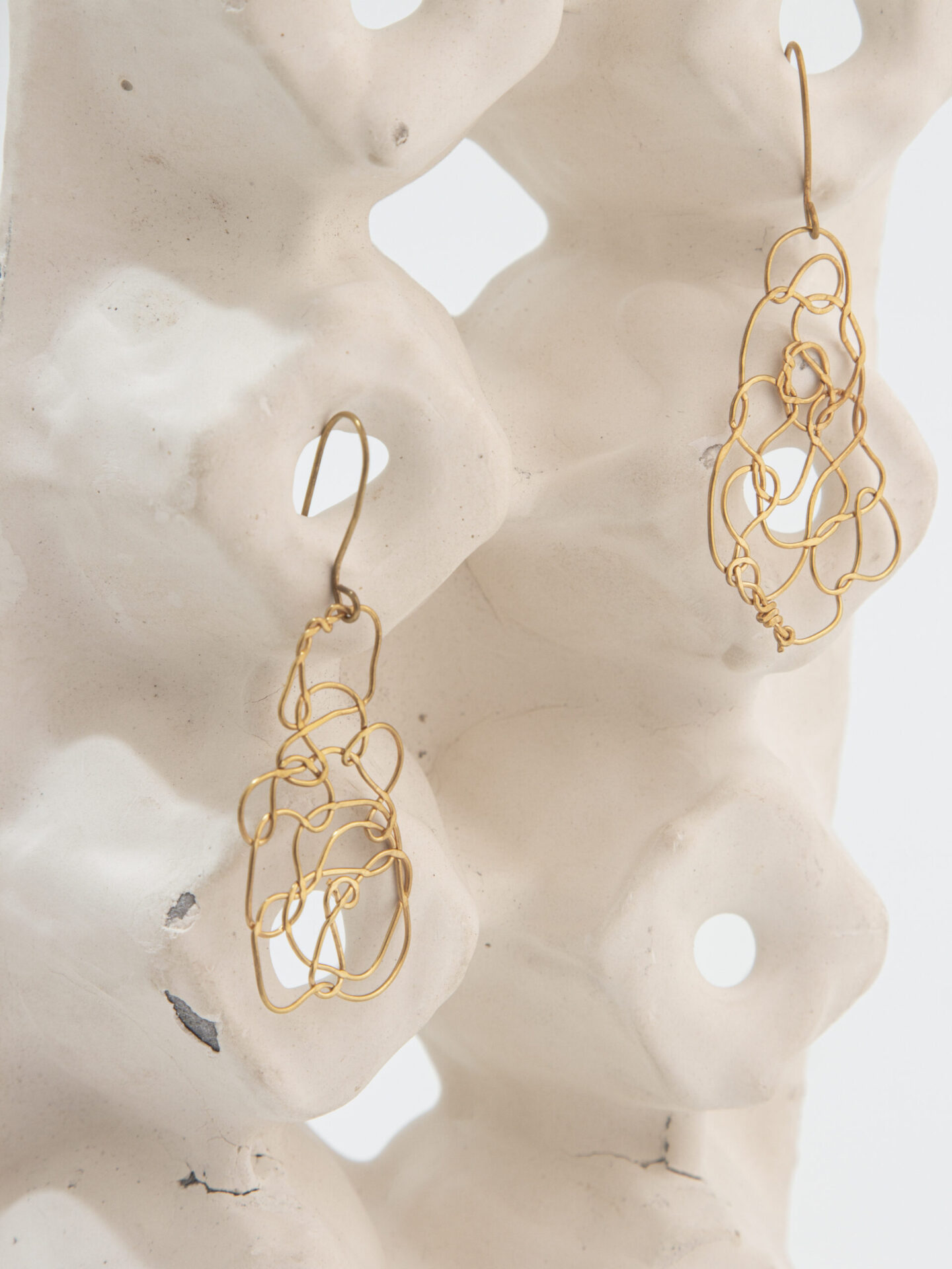 These thin and delicate earrings were created by twisting and flattening a metal wire which is then forged to the thickness of paper. Purely handmade, no piece will look exactly like the other.